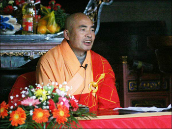 午斋后,弘法部成峰法师领众在弘法部庭园及西花园念佛经行,并在般若堂内为众作了开示。下午,研究所教学部主任观云法师在大雄宝殿为大众作修学开示。与此同时,成峰法师在般若堂内为青年佛学进修班同学讲授在家律仪,今天的讲课内容恰是八关斋戒。