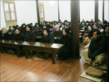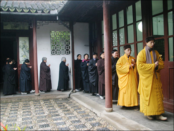 佛教在线1月3日消息 戒幢佛学教育网报道,农历十二月初一(12月31日),也是2005年的最后一天。在这吉祥的日子里,又迎来西园戒幢律寺两月一度的八关斋戒法会,苏州及周边地区信众百余人参加了本次法会。