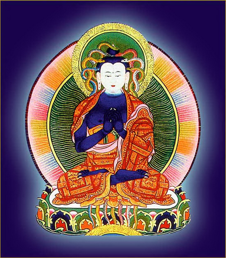 东方遍龙世界之龙尊王佛,面颈白色,身臂蓝色,两手当胸金刚内伏,即食指尖相对竖而略离,两拇指相离,其余各指均向掌心合拢。顶礼此佛可消除八大劫之罪障。