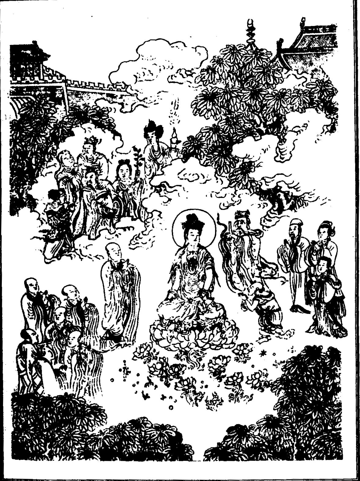 福城的人们,听说文殊师利菩萨将在这里讲《普照法界经》时,都从福城中出来,云集在大截庙处。这位善财童子,也同来听经。