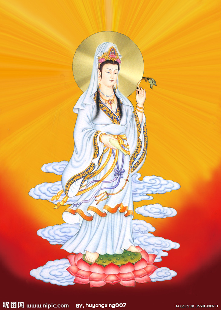 观音,有的时候,叫做观世音;有的时候,叫做观自在;其实是一人。观音的意义,有两种解释:一是依楞严经的解释:这位菩萨最初修行的方法,是耳根不向外闻,而反闻耳根中能闻的闻性,又叫做声性,因为一切众生,向外分别音声,就有毁誉的境界,因此起贪嗔之惑,造淫杀盗之业,而受轮回的苦报。菩萨既不向外闻声,而反闻闻性,性中既没有毁誉的境界,就不起贪嗔之惑;既不起惑,即不造业,当然也就不受苦报。这是约菩萨在因中自己修行而说的。二是依法华经的解释,这“世音”二字,是指世间一切众生的音声,或求菩萨救他的苦,或求菩萨赐他的乐,菩萨只要是听到了他们的音声,一定会帮他们的忙,而各得满愿了。这是约菩萨利人方面说。这两种说法,你读了经论,就自然会知道的。至于“观自在”的名义,是出在心经上的。意思就是说:这位菩萨无论是自利利人,都是能够得大自在,所以叫做观自在。