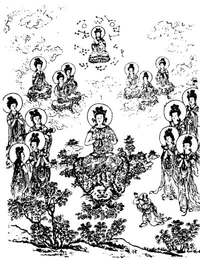 夜神示现了二十四种身①,各有所显示。这时,善财童子见到这种种佛刹微尘数多的不同身,一心顶礼,虔诚之至,乃举身投地,向夜神恭敬顶礼,经过很久时间,才站起来,合掌瞻仰着这位主夜神的尊容。