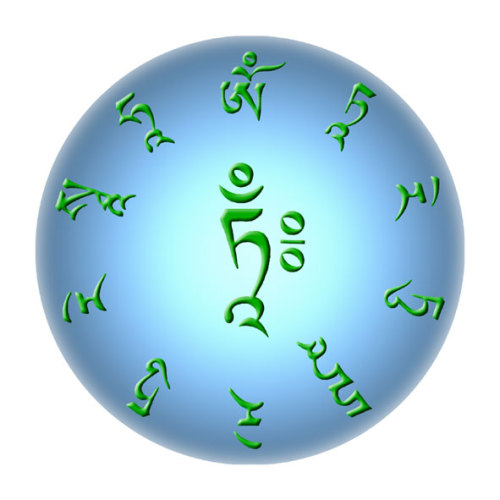 莲心月轮明如镜,绿色当字光灿灿。