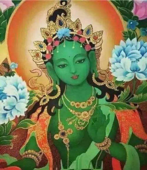 绿度母是观音的化身。在密法中,事部、行部、瑜伽部及无上瑜伽部都有度母的法门,传承也有很多种。无上密的度母修法中,具有生起次第和圆满次第,在下三部中就没有二次第的修法。