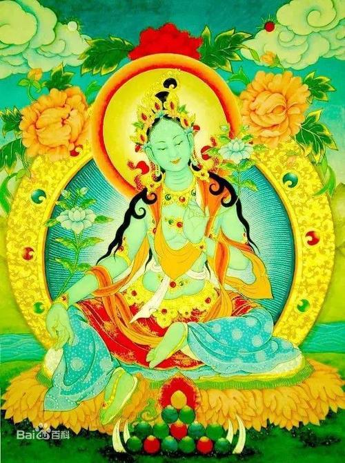 度母一般包括了21度母。在21种度母里面,有长寿的度母,有生财的度母,有专门消灾的度母,也有开智慧的度母等。但在21度母中,绿度母是主要的,以绿度母为首,度母坛城中的主佛是绿度母。绿色代表事业,所以度母的肤色是绿色,绿色也有救苦救难效应非常快速的含义。