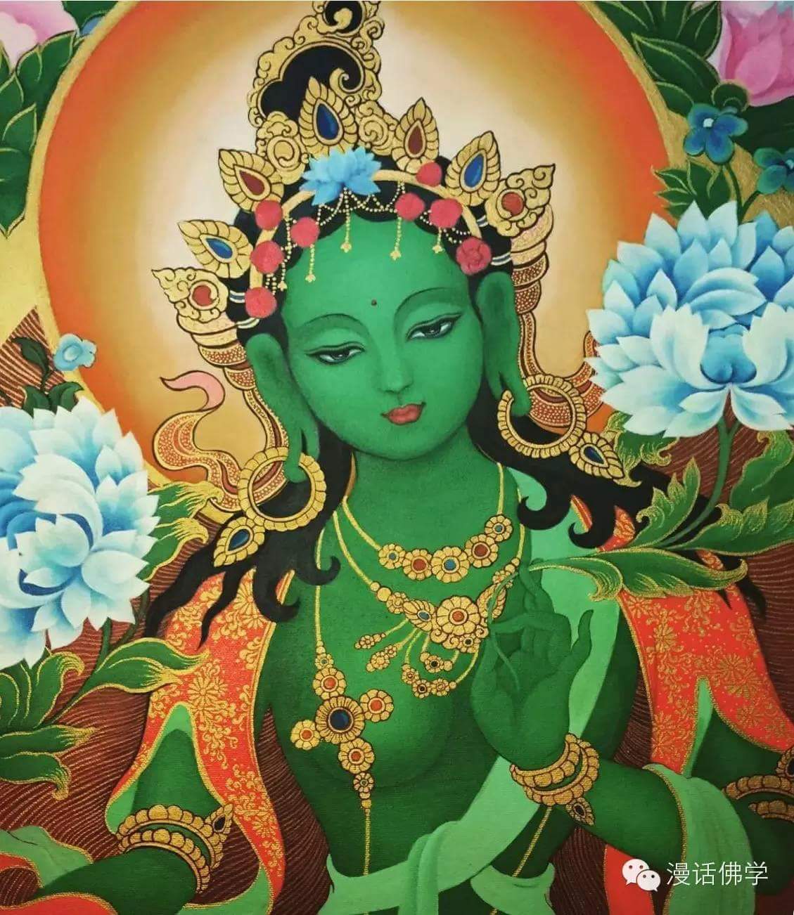 虽然不同形相的度母有不同的修持仪轨,当我们祈请度母时,只要对绿度母祈请就可以,并思惟她能成就我们所求的一切事业。