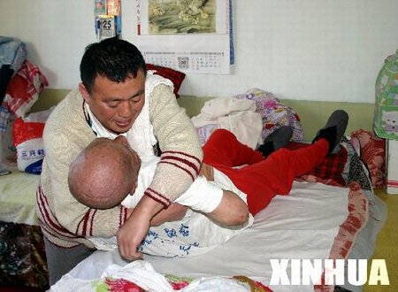 大夫说不用再给穿裤子了,他说我爸爸有尊严,我知道我爸爸想穿内裤。二十六年给爸爸穿,穿内裤你不就麻烦吗?还得洗,光着多方便,一撩被子,底下就好处理。这第一。第二个,大夫说把气管切开,因为他没有吞觉系统,那要呛着怎么办?切开了以后,直接用打饭那个机器,打浆机,把那个饭打了浆以后,用针管注进去。他说:那我爸还是人吗?那我爸太痛苦了,不行,我要喂!大夫说你不能喂,你这喂要呛着可不得了,这要得肺炎。他说我不会的。早晨五点半起来给爸做早餐,一天三餐亲自做,水放到多少,温度多少,这一勺盛多少,全知道,没学过。而且,他能知道这口饭,爸爸现在咽到什么程度,再喂第二口。