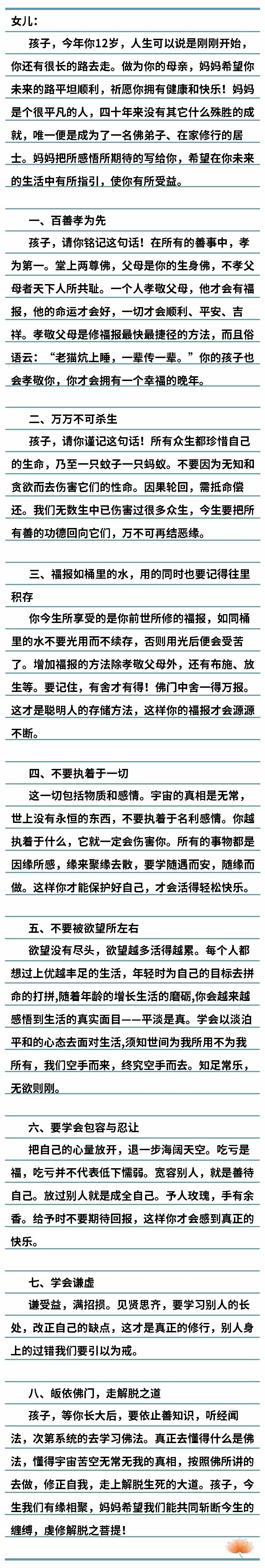 一位学佛女居士写给女儿的信