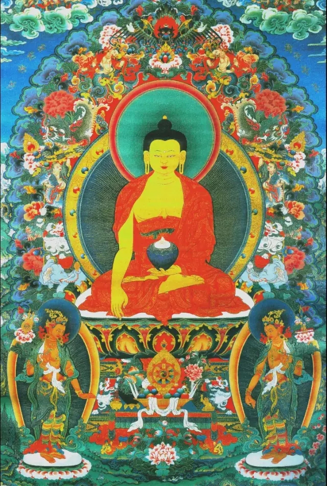 3、随后,于佛像、唐卡等三宝所依前,内心发出离、菩提心,发愿受戒,并念诵八关斋戒仪轨,而得戒;