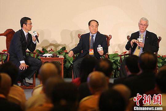 莫言和理查德·罗伯茨(Richard John Roberts)出席第四届世界佛教论坛。中新网图