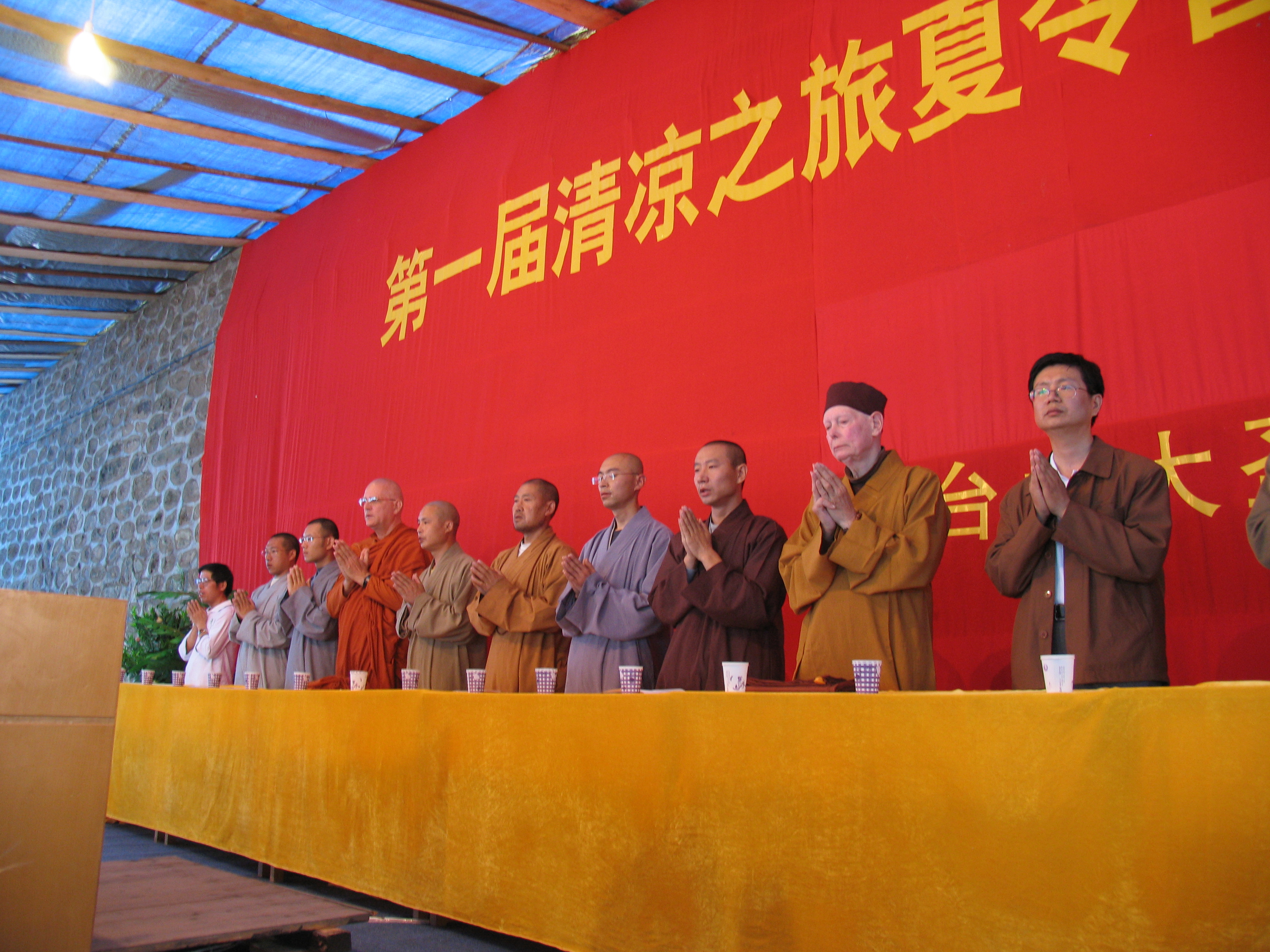 滚滚红尘热浪中,清凉世界习习风。今天上午九时整,第一届五台山清凉之旅夏令营正式开营。万如法师主持了开营式。五台山佛教协会会长妙江大和尚、美国亚非学院博士宽广法师、来自瑞士的明契法师、来自斯里兰卡的阿南陀法师、碧山寺当家理际法师、竹林寺当家义恩法师、明奘法师、