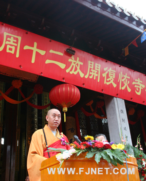随后,雪窦寺方丈怡藏法师向出席庆典法会的各位来宾详细介绍了雪窦寺恢复开放20年以来所做的工作和所取得的成果,怡藏法师的发言赢得了阵阵热烈的掌声。