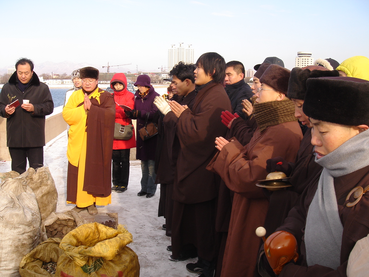 隆冬时节,新年临近。12月21日,伴着吉祥的瑞雪,秦皇岛佛教界在海边举行“迎新年放生祈福活动”,祈祷世界和平,国泰民安,众生离苦,佛教协会会长存海法师主持了放生仪式。佛教四众弟子近百人随喜参加了殊胜吉祥的放生活动,各种贝类、鸟类共计近万数生命重新获得新生。