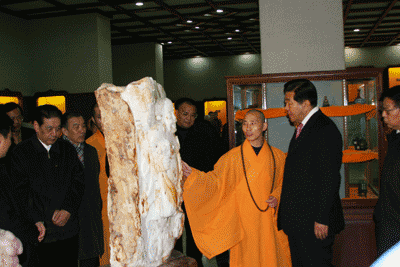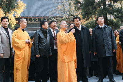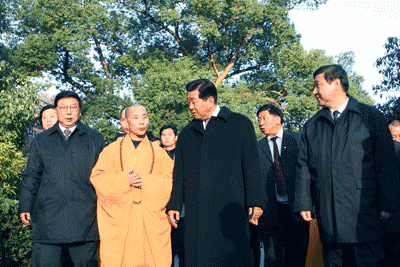 2005年12月15日下午,全国政协主席贾庆林同志在国家宗教局局长叶小文、省委书记习近平、省长吕祖善、市委书记王国平、市长孙忠焕、市民族宗教事务局局长赵一新同志的陪同下视察灵隐寺。
