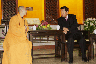 监院觉乘法师与贾主席亲切交谈