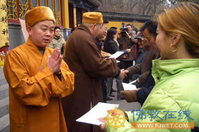 佛教在线12月30日讯 12月28日,南京玄奘寺传真法师为减轻政府的负担,特在风景秀丽的南京玄武区九华山玄奘寺举行捐赠活动。传真法师与玄武区40多户贫困家庭进行了亲切交谈,了解他们身体状况和实际生活困难,并给每人送上了一份慰问和祝福。40多户贫困家庭对传真法师的捐助和慰问表示很开心,衷心感谢僧人们对他们的关心和体恤。
