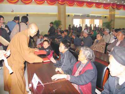 12月25日上午,遵照南普陀寺慈善会会长圣辉法师的指示,常务副秘书长普陀法师和慈善处德鸣法师、天真法师、觉明法师等,在厦门市翔安区区政府4号楼3楼会议室里举行了“迎新春送温暖献爱心慰问孤老孤儿”的活动,为100名孤寡老人和100名孤儿发放慰问善款10万元。祝愿孤老孤儿新年愉快、幸福美满、平安祥和!