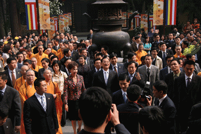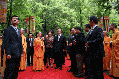 灵隐寺网站报道:4月22日下午,中国国民党名誉主席连战先生偕夫人一行,在浙江省委副书记夏宝龙等相关领导的陪同下,赴灵隐寺参观访问。