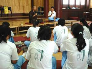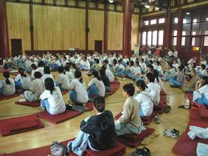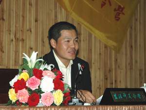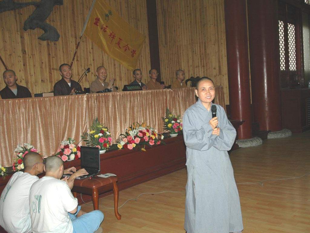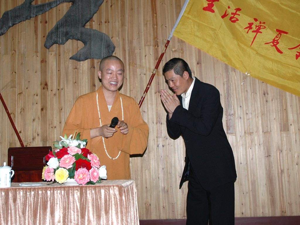 上午,成功的民营钢铁企业家丁立国居士在文殊阁给营员们作了讲演,分享了他十几年的成功经