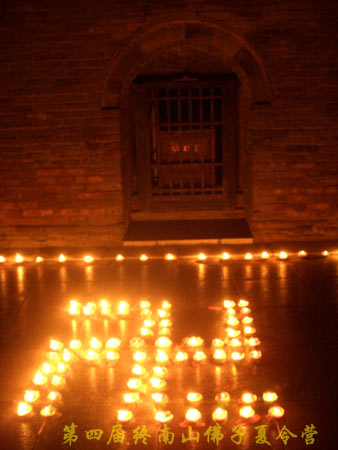 晚上七点半,在兴教寺大雄宝殿举行传灯法会,营员们手捧莲灯,跟随法师到三藏塔下供灯。整个传灯法会在庄严、祥和的氛围下圆满结束。