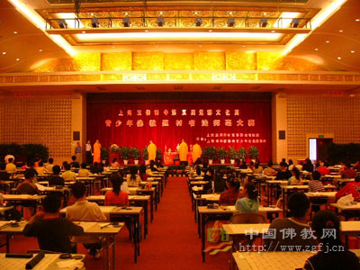 上海玉佛寺为了更好的推动书写经典,传承中华民族的文化精髓,并使其发扬光大。于2006年10月2日下午在玉佛寺觉群楼二楼多功能厅举办青少年佛教题材书法挥毫大赛。