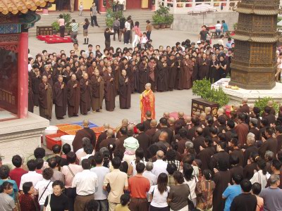 据荐福观音寺报道:2006年10月6日,适逢日光菩萨圣诞吉日,天津荐福观音寺隆重举行了上大供、放生及拜月吉祥法会,有近5000名信众随喜道场。晚八时,还举行了中秋赏月联谊会,邀请寺院护法、工作人员及家属共同参加,在这秋高气爽,慧风和畅的美好时节,天津弘一佛乐演唱团的法师和居士表演了精彩的节目,正所谓“灯前树下同邀月 月映秋田心无别”。