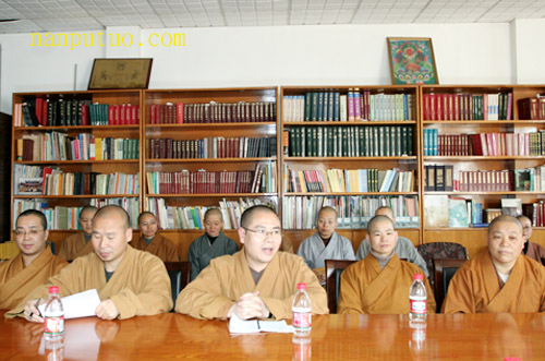 闽院教务长传明法师为对方介绍了闽院的创办、发展、以及兴衰史和目前教学情况,从寺院的体制转变到教学体制、管理体制,简略而全面的作了个介绍。大家互相讨论介绍,不胜欢喜。