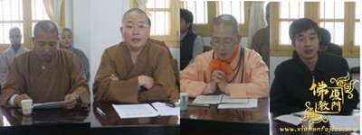本次会议由定恒法师主持,参加会议的有:厦门市佛教协会会长、南普陀寺方丈则悟法师,厦门市佛协常务副会长定恒法师,副会长法云法师、法源法师、开敏法师,秘书长净心法师,副秘书长忠明法师、竺冰法师,厦门市民宗局一处钟晓波主任及厦门市各寺庙的主要负责人。