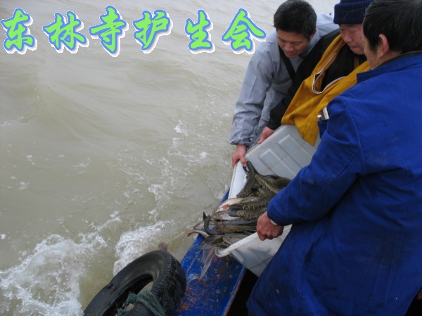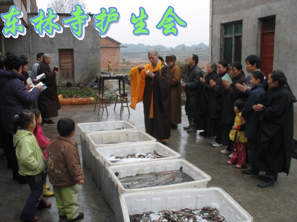 一大早,护生会人员和参加佛七的居士十余人冒着小雨出发,到了九江市场,雨越下越小,渐渐的停了。现在寒冬腊月,临近春节,大多数人家都在办年货,而年货又大多是众生肉啊!因此,东林寺护生会不顾大寒,去抢救众生。在熙熙攘攘的市场里,随处可见的都是众生的血肉之躯,心不停的在颤动,抓紧时间抢救众生生命吧,生怕晚一步被别人买去杀了。经过2个小时的购买,装满了一货车6大箱的众生。所救物命有,乌鱼、黄鳝、泥鳅等,共计花去23275元人民币。