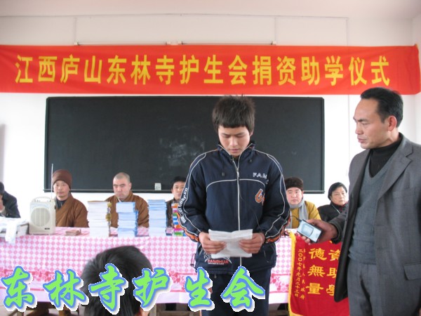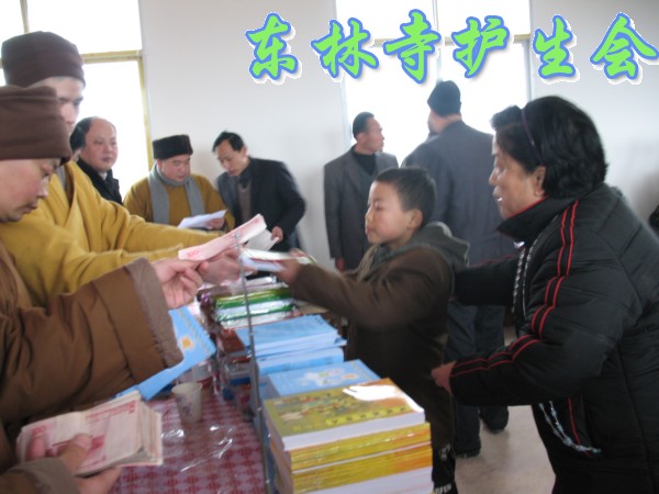 上午10点30分,捐赠仪式在阳新县排市镇中心希望小学举行,现场为50多名贫困小学生每人发放了资助款300元,并发放了一些文具用品:文具盒、铅笔、作业本等,还发放了《弟子规》给每位学生,希望他们好好学习,好好做人。阳新县相关领导、受捐助的学生代表,在捐赠仪式上发表讲话,对东林寺护生会的这一善举表示感谢。其中学生代表感动的哭了。学生们表示一定好好学习,将来为国家、为社会做贡献。心开法师在讲话中也一再鼓励学生们要好好学习,并要求他们在生活中不要伤害动物。