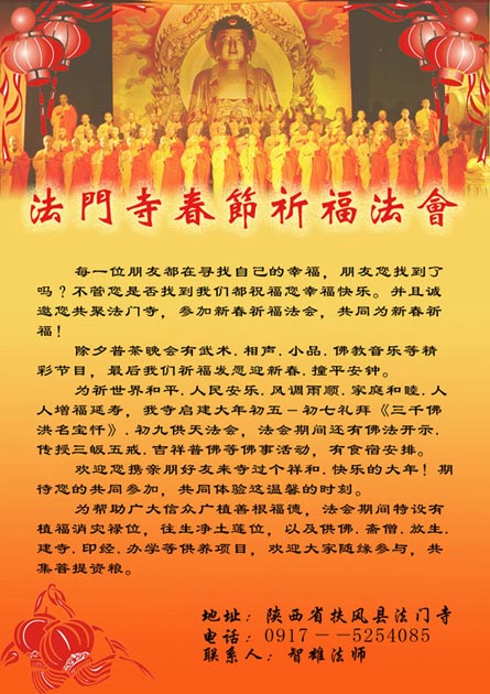 法门寺将举办春节祈福法会