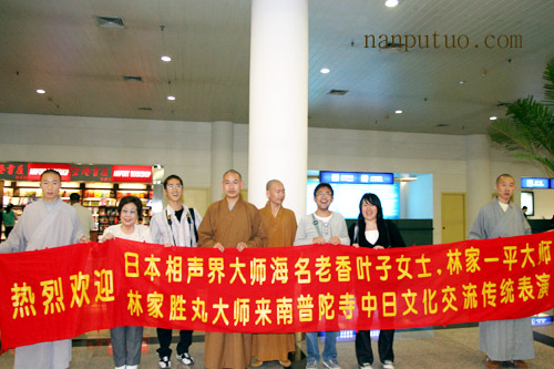 4月26日晚22时30分,海名老香叶子女士等一行抵达厦门机场,我寺知客法尊法师、明律法师等受方丈则悟大和尚委托专程到机场迎接。老香叶子女士表示各位法师能够亲临机场迎接使她深受感动,宾主双方怀着愉悦的心情在“热烈欢迎日本相声界大师海名老香叶子女士,林家一平大师,林家胜丸大师来南普陀寺中日文化交流传统表演”的横幅前合影留念。