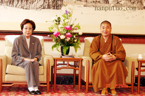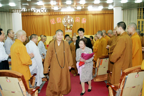 大师的表演在热烈地掌声中圆满结束,法尊法师代表全寺僧众为海名老香叶子女士等奉上鲜花以达谢意,并诚恳地邀请其一行人等再次光临我寺。