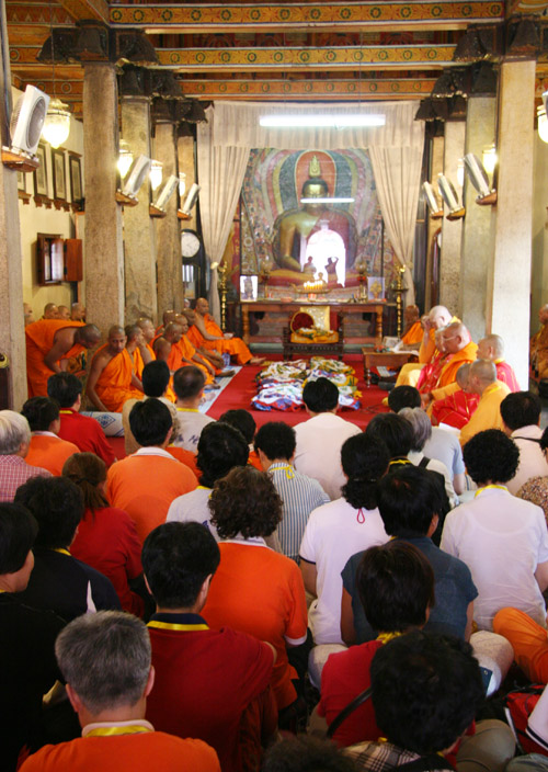 下午1点代表团一行赴Asgiriya Viharaya(寺)访问,在Asgiriya Viharaya(寺)参加法师斯里兰卡荣誉法号仪式及诵经等法会。下午2点45分赴Malwatte Viharaya(寺)参加法师斯里兰卡荣誉法号仪式。6点赴康提佛牙寺访问。佛牙寺是斯里兰卡最著名的佛教胜地之一,佛牙寺的佛牙舍利是1500多年前传到斯里兰卡的,斯里兰卡历代帝王精心守护,代代相传。斯里兰卡的佛教徒也将佛牙舍利视为至圣宝物,供奉在佛牙寺大殿暗室中。