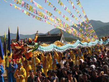 象山玉泉讲寺中轴三大殿上梁法会隆重举行