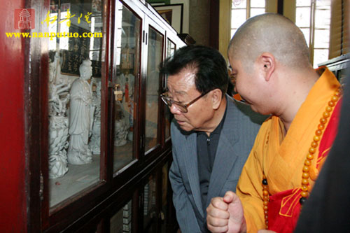 则悟大和尚陪同李瑞环夫妇一行参观了我寺的主体建筑,沿途围观群众热情鼓掌,问候李主席夫妇之声此起彼伏,气氛极其热烈。之后,在法堂,方丈则悟大和尚受圣辉大和尚委托率两序大众举行了庄严隆重的祈福法会,祈祷世界和平,国泰民安,社会和谐,祖国统一,并祝愿李主席夫妇身体健康,六时吉祥。