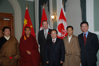 2007年11月7日,加拿大新兴石油城市卡尔加里市市长布隆康尼会见由中国藏学研究中心研究员安才旦率领的“中国藏学家、活佛代表团”一行。