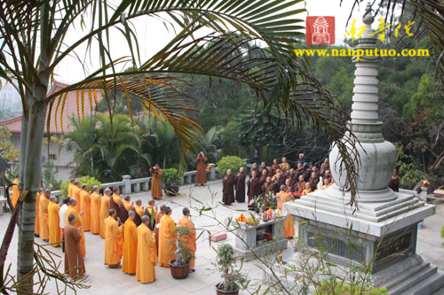 为了瞻仰先贤、缅怀师恩,12月25日上午9时,闽南佛学院第六届同学于毕业十周年重聚之际,在妙湛老和尚、会泉老和尚舍利塔前举行上供仪式。