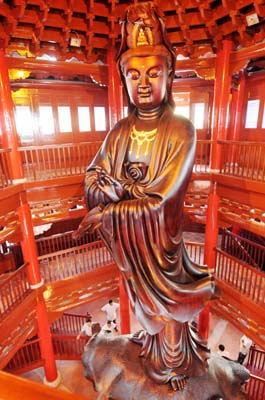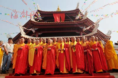 2009年5月16日7时40分左右,数百名海内外佛教界诸山长老以及上万名信众齐聚福建省泉州市少林寺,共同为观音阁内12米高的荷瓶观音圣像举行开光法会。