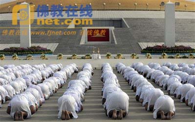 2009年8月29日,泰国巴吞他尼府法身寺举行剃度大典,逾七千名来自泰国各地的男子剃度为僧侣。这些新僧侣将在法身寺内进行修持,直到10月4日佛教徒的斋戒结束。(图:美联社)