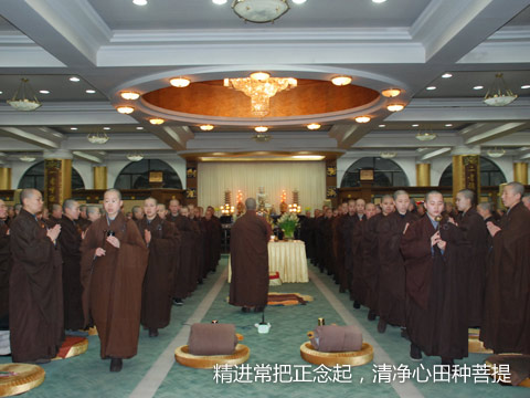 2010年正月二十日,普寿寺法堂内从早上天不亮到晚上9:00,一直传来悠扬的念佛声,俨然一个清净的念佛堂。