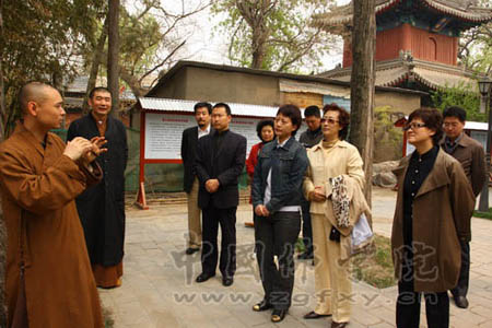 中国佛学院研究生思和法师带领学员们参观了寺院各个殿堂,并介绍了法源寺的历史文化。随后,学员们在悯忠阁前赏花品茗,学禅悟道。期间,宗性法师还为大家作了精彩的开示。