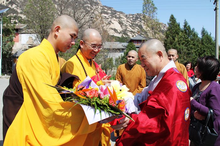 2010年4月28日上午十点,韩国佛教天台宗总务院长正山长老一行参访北京龙泉寺。龙泉寺方丈学诚法师率两序大众热情接待了参访团一行。