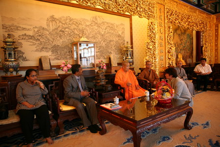 2010年5月24日,斯里兰卡驻华武官和大使夫人拜访北京灵光寺,就将在灵光寺举办的佛教卫赛节事宜与灵光寺方丈常藏法师进行交流。