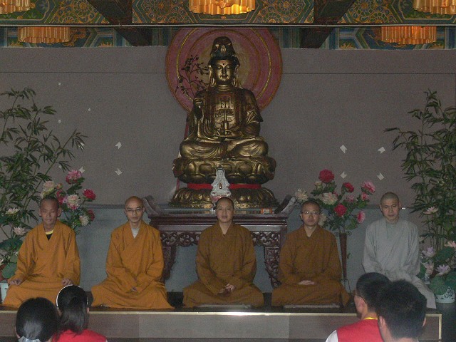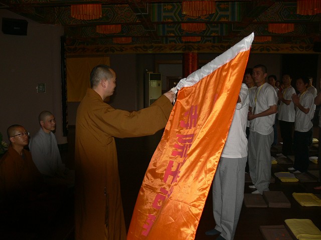 2010年05月01日 重庆市华岩寺为期三天的第九届丛林生活体验营正式开营。上午,来自四面八方的营员们陆续前来报到,接待、发放营服,安排住宿,华岩义工们忙碌着。下午两点整,重庆华岩寺方丈道坚法师、重庆华岩文教基金会秘书长心河法师、重庆佛学院训导主任证性法师、义悲法师、西相法师等在华岩寺禅修中心与营员们举行见面会与授旗仪式。见面会上道坚法师要求大家在这三天时间里抛开世俗的烦琐之事,一心体验中国传统的礼仪与严格的僧团生活,通过实修,了证真理。在授旗仪式上,道坚法师将重庆华岩寺第九届丛林体验营营旗庄重地递到旗手手上,全体营员在营旗下庄严的宣誓声响彻了禅堂。参加见面会的法师在会上并分别致辞,鼓励营员们互相关心,实实在在体验,真真正正修行。