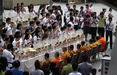 数以百计的佛教僧侣沿“红衫军”曾占领的购物区从好心人那里化得斋饭。基督徒、穆斯林和锡克教领袖们也加入到为曼谷祈祷的行列中。以佛教信仰为主的泰国正面临日益扩大的社会和政治鸿沟。