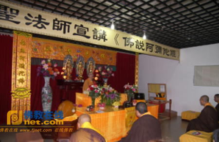 来圣法师围绕净宗主题,随机演讲,深入浅出,有条不紊地开演弥陀圣义,使听众坚固道心,法喜充满。