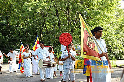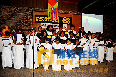 在芝加哥佛教寺院的当地僧人,及Kudagammana Seelarathana法师用佛教仪式为参加活动的人祈福。所有来自伊利诺斯州的斯里兰卡家庭参加了此次波桑节庆祝活动。
