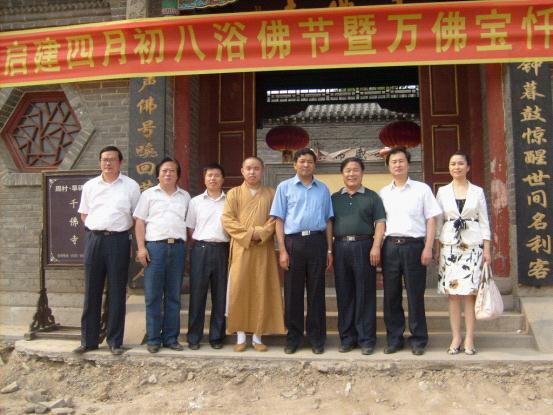 佛教在线山东讯 2010年6月2日,山东省宗教局马银平副局长在淄博市宗教局于精忠局长、王爱军副局长,周村区蔡华刚副区长,周村区宗教局刘树林局长、王延强副局长的陪同下,到周村区千佛寺视察指导工作,受到了千佛寺住持仁宣法师的热情接待,双方进行了亲切交谈,马银平副局长对千佛寺的相关工作表示肯定,并对千佛寺的发展前景提出了宝贵的意见和建议,最后,马银平副局长一行与仁宣法师在寺院山门前合影留念。