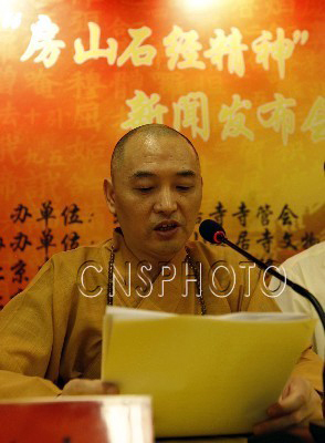 作品以歌颂“房山石经精神”为主,歌曲须为原创作品,歌名自定。独唱、重唱、合唱形式均可。歌词健康,易于传唱。完成的音乐作品,于2010年8月20日至10月1日间提交云居寺管委会。主办方将邀请海内外著名词曲家、艺术家、音乐人等对作品进行评选。房山区云居寺果坚法师宣布征集活动正式启动,拉开了面向全球征集活动的序幕。(图:任海霞)